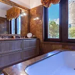 S výhledem na zahradu, vila nabízí hostům také 9 ložnic a 9 koupelen s bidetem, vanou a sprchou.